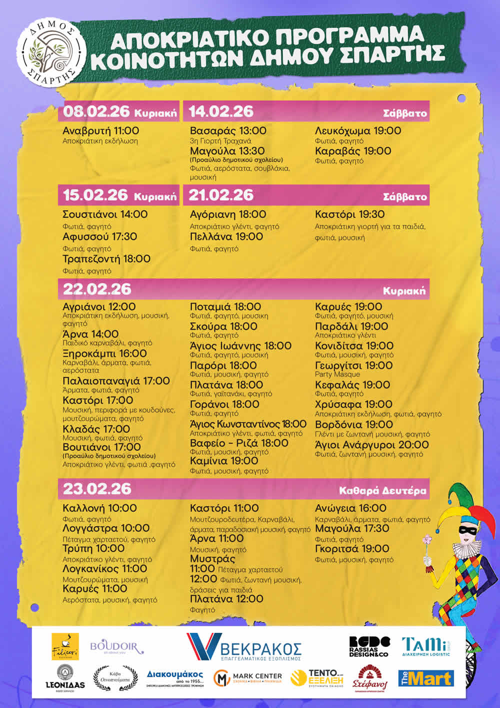 Περί έγκρισης Προϋπολογισμού και Ολοκληρωμένου Πλαισίου Δράσης (ΟΠΔ) έτους 2026 η προσεχής Συνεδρίαση του Δ. Σ., την Τετάρτη, 11 Φεβρουαρίου 2026 Οι τρείς συνεδριάσεις θα πραγματοποιηθούν τόσο δια ζώσης (στο Δημαρχιακό Μέγαρο - Κεντρική Πλατεία Σπάρτης - αίθουσα συνεδριάσεων) όσο και με τηλεδιάσκεψη στις 19:00, 19:05 και 19:45 αντίστ...