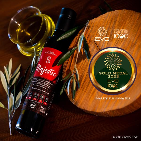βιολογικά gourmet ελαιόλαδα των ελαιώνων Σακελλαρόπουλου στην Ιταλία για το 2023 είναι: MAJESTIC