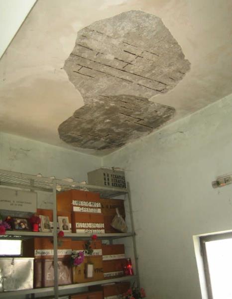 μεγάλο μέρος του σοβά της οροφής είχε καταρρεύσει μαζί με το φωτιστικό (ευτυχώς
