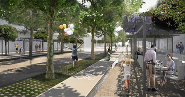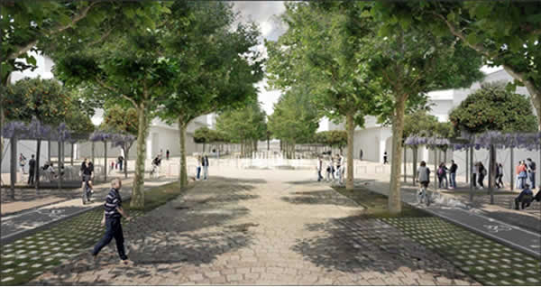 και μερικούς θάμνους. Σε αντικατάσταση αυτών προβλέπονται: Περίπου 1.300m2 (πρακτικά το ? της επιφάνειας) θα καλύπτεται
