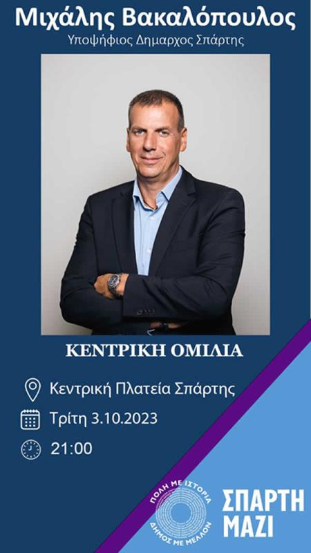 03η-10-2023, και ώρα 21.00, στην κεντρική πλατεία της πόλης μας, θα μιλήσει ο