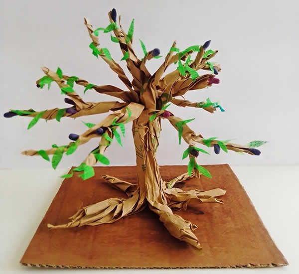 μικρά ελαιόδεντρα, χρησιμοποιώντας ανακυκλώσιμα υλικά συσκευασίας, όπως