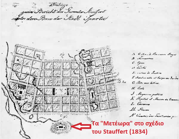 (όπως δείχνουν οι ισομετρικές του καμπύλες στο σχέδιο της νέας Σπάρτης, που εκπόνησε, στα 1834, κατ’