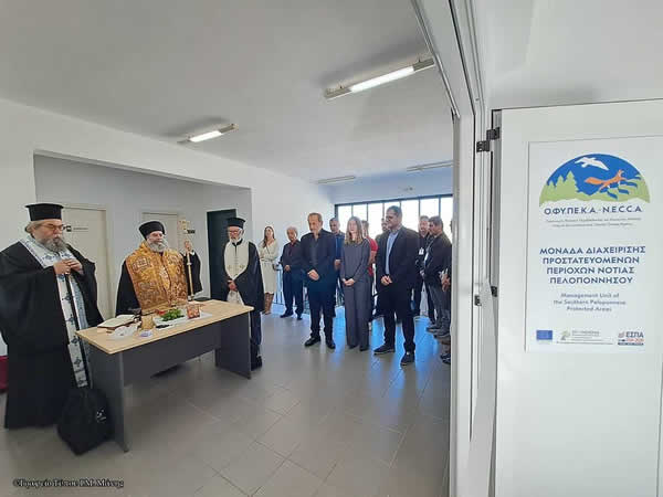 Ο Σεβ. Μητροπολίτης Μάνης κ. Χρυσόστομος Γ΄ τέλεσε στο Διοικητήριο, στην Αρεόπολη Μάνης, την Πέμπτη 16 Νοεμβρίου 2023, τον αγιασμό για τα εγκαίνια του νεοσύστατου Παραρτήματος της Μονάδας Διαχειρίσεως Προστατευομένων Περιοχών Νοτίου Πελοποννήσου και του Οργανισμού Φυσικού Περιβάλλοντος και της Κλιματικής Αλλαγής.
