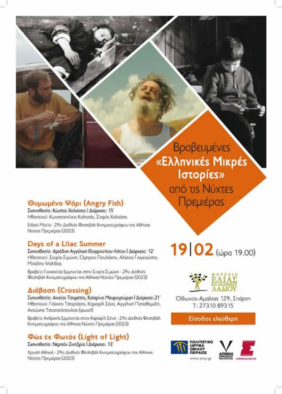 το πρόγραμμα προβολών ταινιών μικρού μήκους «Ελληνικές Μικρές Ιστορίες», τη Δευτέρα 19 Φεβρουαρίου 2024 (ώρα 19:00),