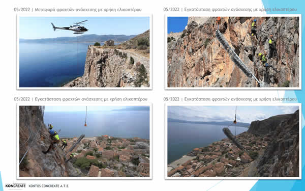 εναερίτες και η μεταφορά των υλικών έγινε με ελικόπτερο. Περιγραφή έργου: ΠΡΑΞΗ: «ΜΕΤΡΑ ΣΤΑΘΕΡΟΠΟΙΗΣΗΣ ΒΡΑΧΩΔΩΝ ΠΡΑΝΩΝ ΚΑΣΤΡΟΥ
