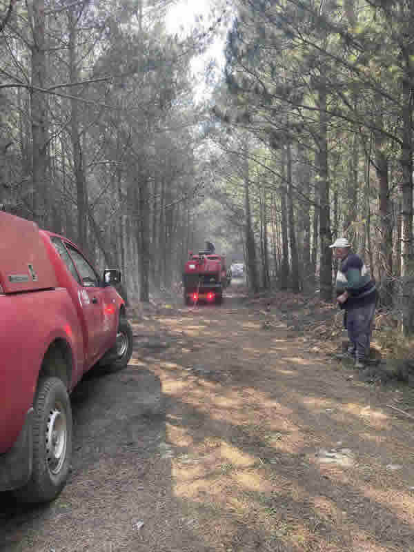 ακόμα και μέσα από χωράφια για την κατάσβεση της φωτιάς στο αρχικό της στάδιο,