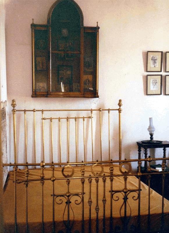 από «τις πολλές κινήσεις κι ομιλίες». Το δωμάτιο ύπνου με το κρεβάτι και το εικονοστάσι, αναπαραγωγή του αυθεντικού