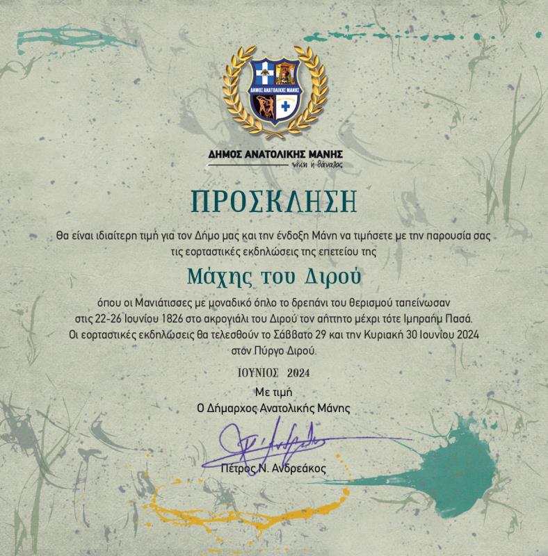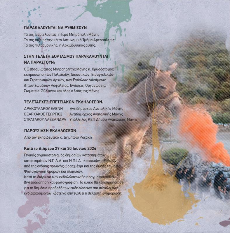 την ένδοξη Μάνη να τιμήσετε με την παρουσία σας τις εορταστικές εκδηλώσεις της