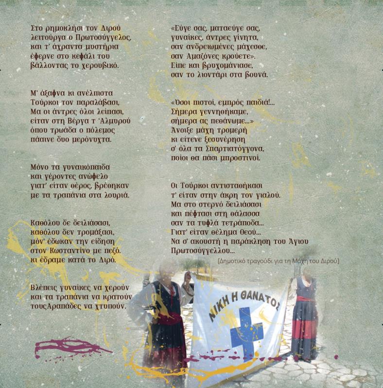 τρέψουν το πολυάριθμο στράτευμα σε φυγή στην ακρογιαλιά του Διρού. Οι γυναίκες της Μάνης έγραψαν τη δική τους