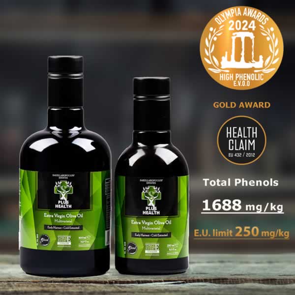 φαινόλες ΑΓΟΥΡΕΛΑΙΟ – Χρυσό & 1563 mg/kg φαινόλες PLUS HEALTH BLUE – Χρυσό & 1307 mg/kg