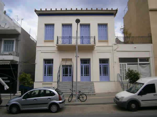 για ένα διώροφο , υπερυψωμένο κτήριο με κεραμοσκεπή και νεοκλασικά