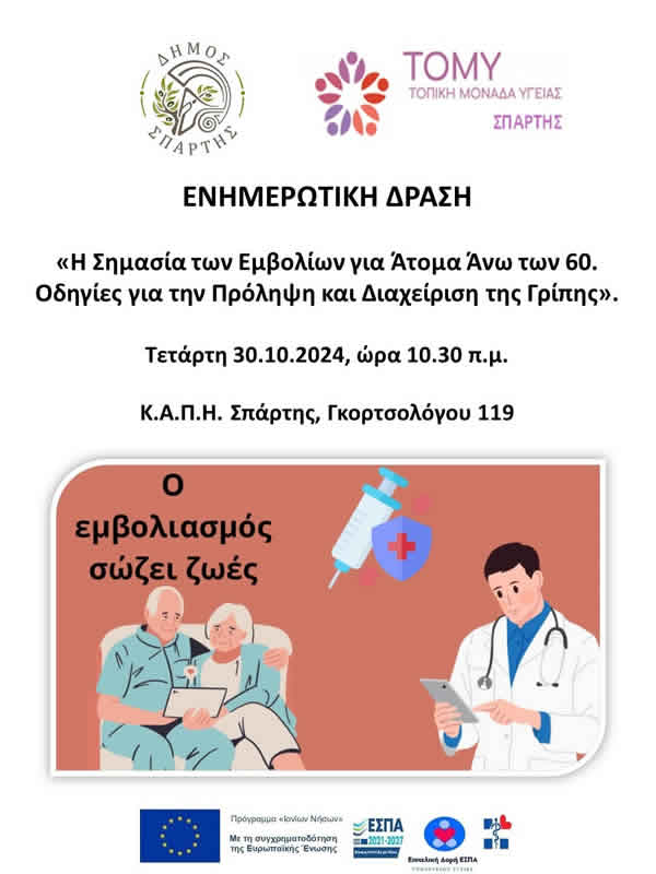 ενημερωτικής δράσης που διοργανώνουν στο ΚΑΠΗ Σπάρτης, ο Δήμος Σπάρτης και η