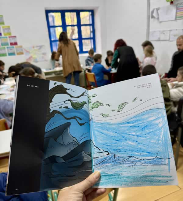 Η ιστορία της Γεωργίας Κακούρου-Χρόνη ταξίδεψε τα παιδιά του Νηπιαγωγείου και του Δημοτικού σχολείου του Καστελλόριζου σε έναν κόσμο γεμάτο θάλασσα, ουρανό και τη μαγεία της φύσης
