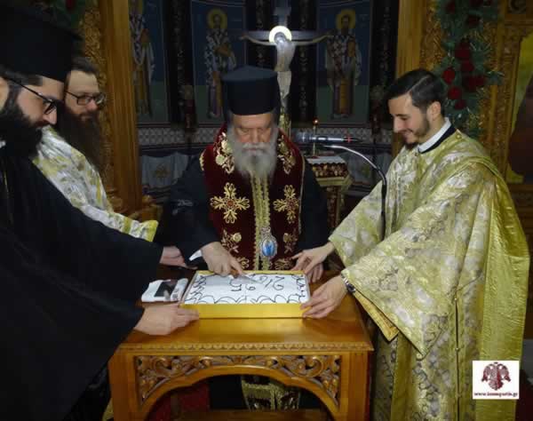 Μετά την χειροθεσία και την Απόλυση, ακολούθησαν η κοπή της Βασιλόπιτας, η διανομή των κομματιών και η ανταλλαγή ευχών σε χαρμόσυνο κλίμα