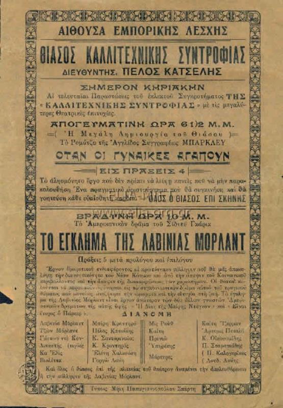 και θα γοητεύση κάθε ευαίσθητη καρδιά. ΟΛΟΣ Ο ΘΙΑΣΟΣ ΕΠΙ ΣΚΗΝΗΣ» Το άλλο έργο, το πιο «βαρύ», παιζόταν στην