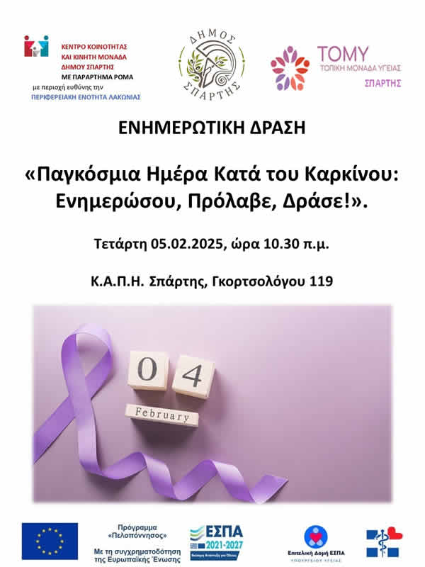 σημαντική πρωτοβουλία που γιορτάζεται κάθε χρόνο την 4η Φεβρουαρίου. Στην Ελλάδα, ο καρκίνος παραμένει η δεύτερη