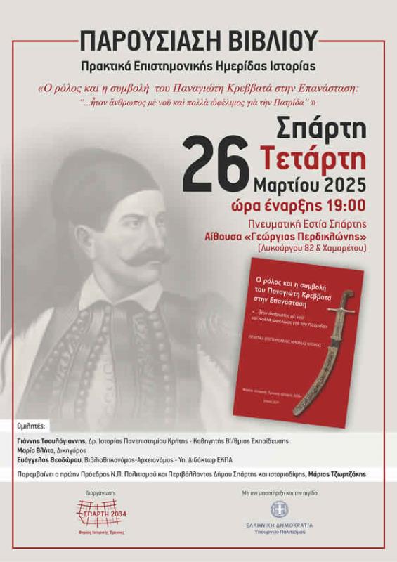 «Σπάρτη 2034» με θέμα: «Ο ρόλος και η συμβολή του Παναγιώτη Κρεββατά στην