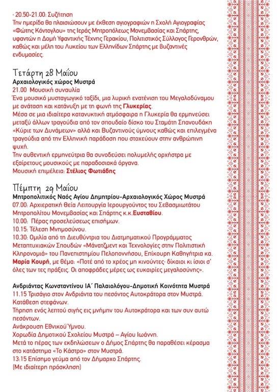 Πολιτισμού στον Μυστρά, ενώ την παραμονή της αποφράδας για το Βυζάντιο μέρας, η