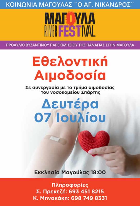 Δευτέρα 7 Ιουλίου από τις 18:00 έως και τις 20:30 στη Μαγούλα να προσφέρουμε