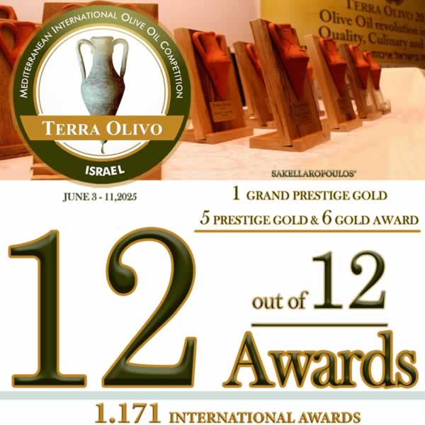 12 συμμετοχές ελαιολάδων των βιολογικών ελαιώνων Σακελλαρόπουλου,