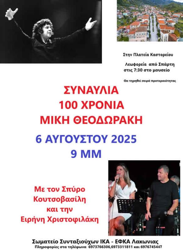 τιμά τον Μίκη την Τετάρτη 6 Αυγούστου, 2025, στο Καστόρι, με συναυλία στην