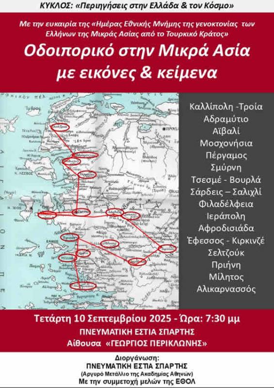 ΠΝΕΥΜΑΤΙΚΗΣ ΕΣΤΙΑΣ ΣΠΑΡΤΗΣ εκδήλωση με θέμα: Οδοιπορικό στην Μικρά Ασία με εικόνες &