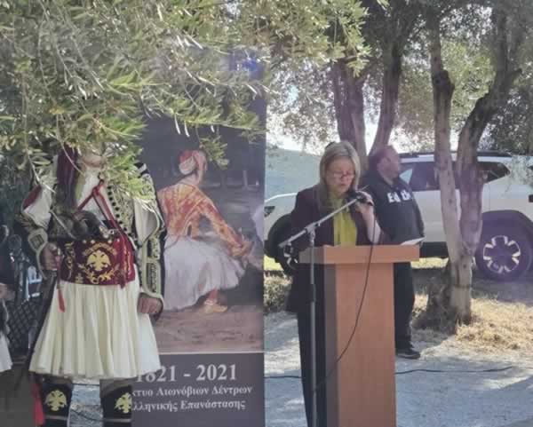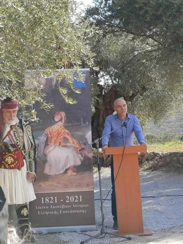 συσχέτιση της μνημειακής ελιάς με την Ελληνική Επανάσταση. Μεταξύ άλλων, τόνισε ότι η μνημειακή ελιά