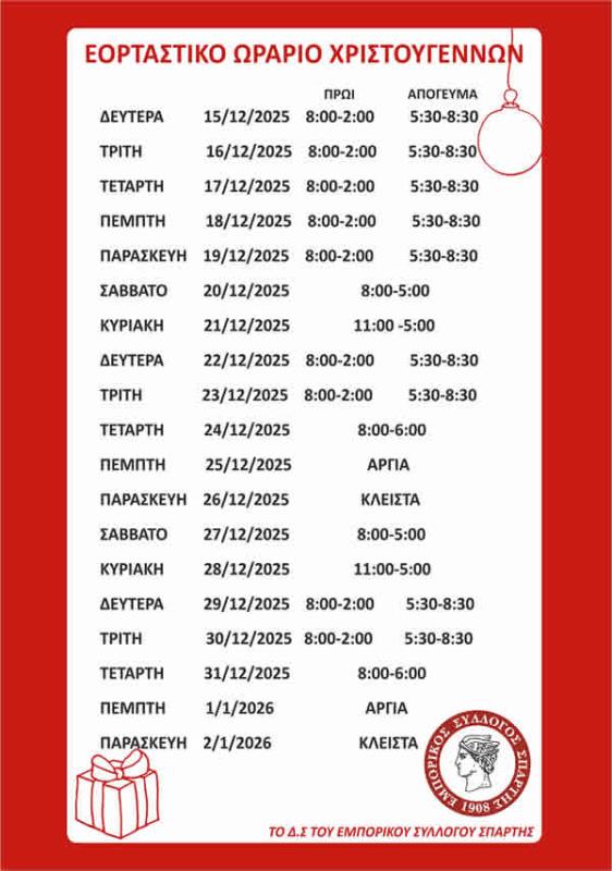 για το εορταστικό ωράριο λειτουργίας των καταστημάτων ενόψει των Χριστουγέννων