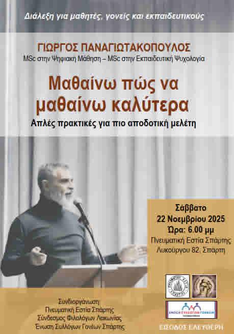 Γονέων Δήμου Σπάρτης σας προσκαλούν στην εκδήλωση «Μαθαίνω πως να μαθαίνω