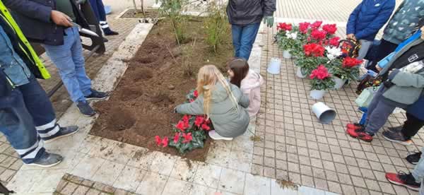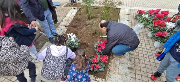 Σχολείου Σπάρτης, φυτεύοντας ελιές και πολύχρωμα κυκλάμινα στα κεντρικά