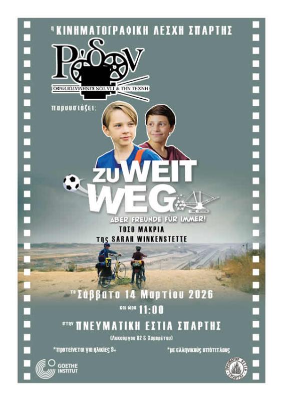 Μαρτίου, στην Πνευματική Εστία Σπάρτης, στις 11.00. * Η ταινία προτείνεται για ηλικίες 9+