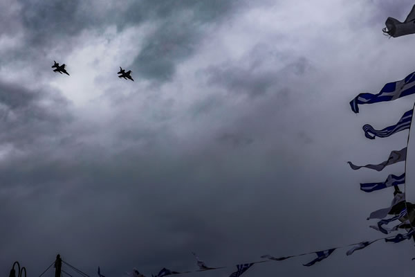 απόδοσης τιμών, στρατιωτική μουσική και τιμητική διέλευση ζεύγους μαχητικών