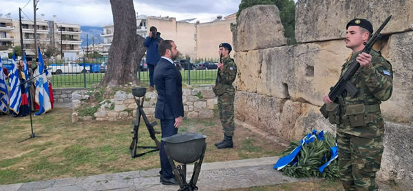η κατάθεση στεφάνων και ακολούθησε η καθιερωμένη μαθητική παρέλαση. Στον Μυστρά, μετά τη δοξολογία και την