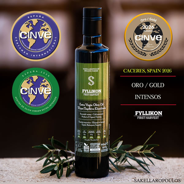 Τιμήθηκαν με τα 10 από τα 14 βραβεία της Ελλάδας | Στο διεθνή διαγωνισμό της Ισπανίας, CINVE IOOC 2026 | Με 4 χρυσά & 6 ασημένια βραβεία, ανάμεσα σε 1.000 ελαιόλαδα από πολλές χώρες του κόσμου | Νέο παγκόσμιο ρεκόρ 1.242 διεθνών βραβείων