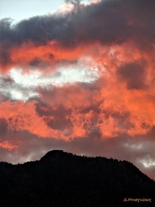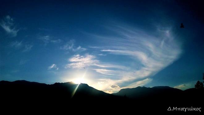 Περισσότερα >>Στις αραιές νεφώσεις στον Ταΰγετο, καθώς δύει ο ήλιος, διακρίνεται ένα πουλί με ανοιγμένα τα φτερά του (φωτο: Δ. Μπαγιώκος)