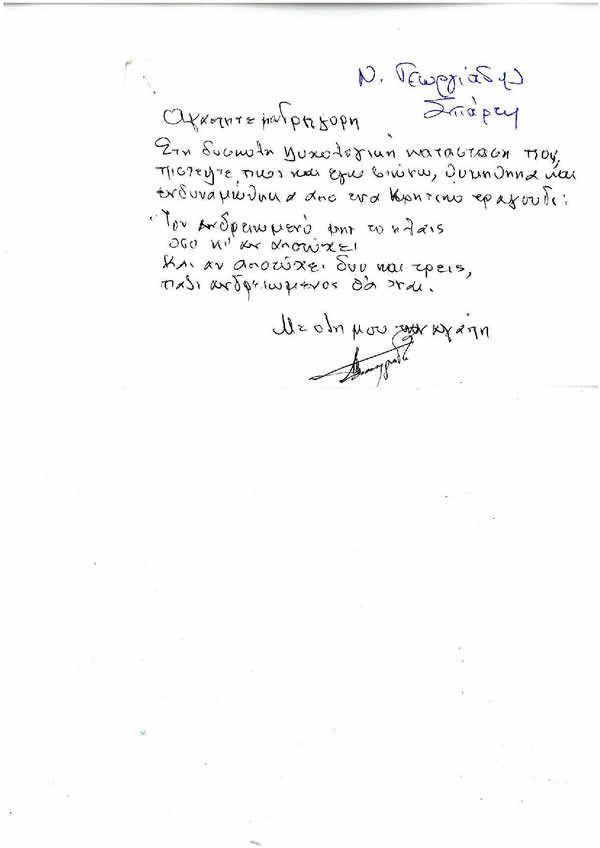 αείμνηστος Νίκος Γεωργιάδης, μου απέστειλε ένα χειρόγραφο κείμενο που σου
