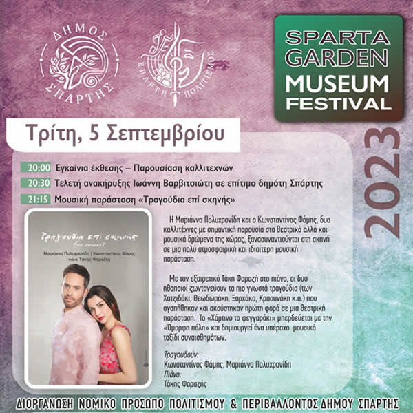 Αναβάλλεται" title="Δήμος Σπάρτης: «Sparta Garden Museum Festival» Αναβάλλεται">