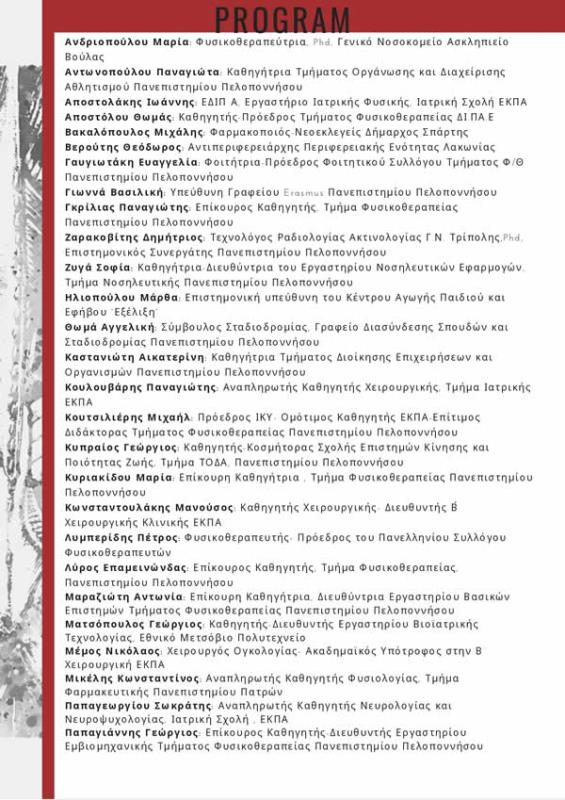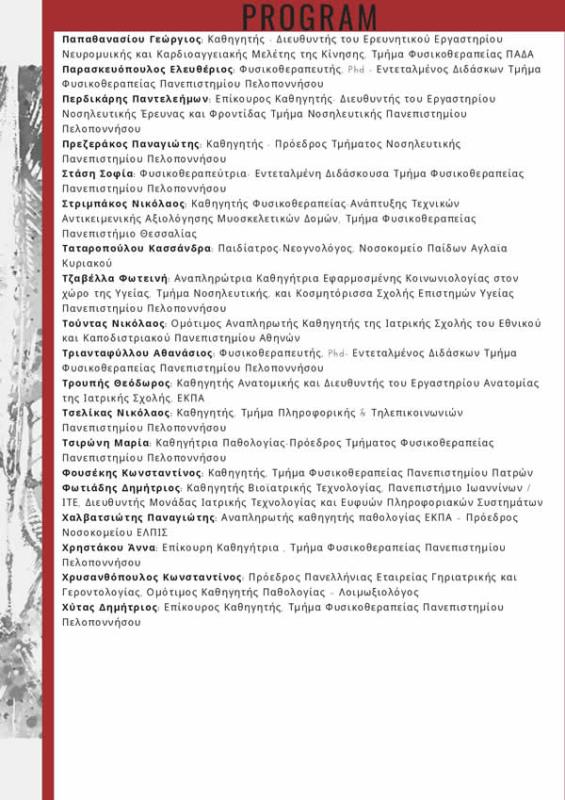 της 2ης Επιστημονικής Διημερίδας. ΧΩΡΟΣ ΔΙΕΞΑΓΩΓΗΣ: Έδρα Τμήματος Φυσικοθεραπείας-Αμφιθέατρο