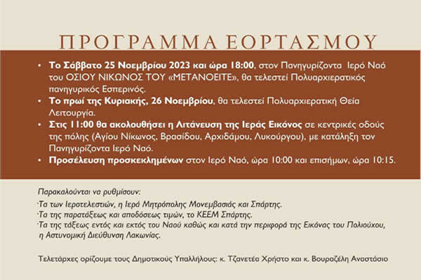 Το Σάββατο 25 και την Κυριακή 26 Νοεμβρίου 2023