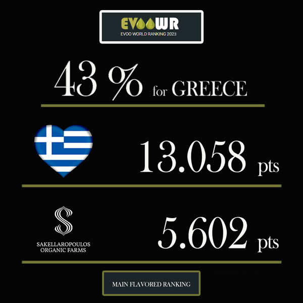 πόντους, στην κατηγορία World Ranking of Countries of Flavored Oils 2023. Ταυτόχρονα οι βιολογικοί ελαιώνες Σακελλαρόπουλου