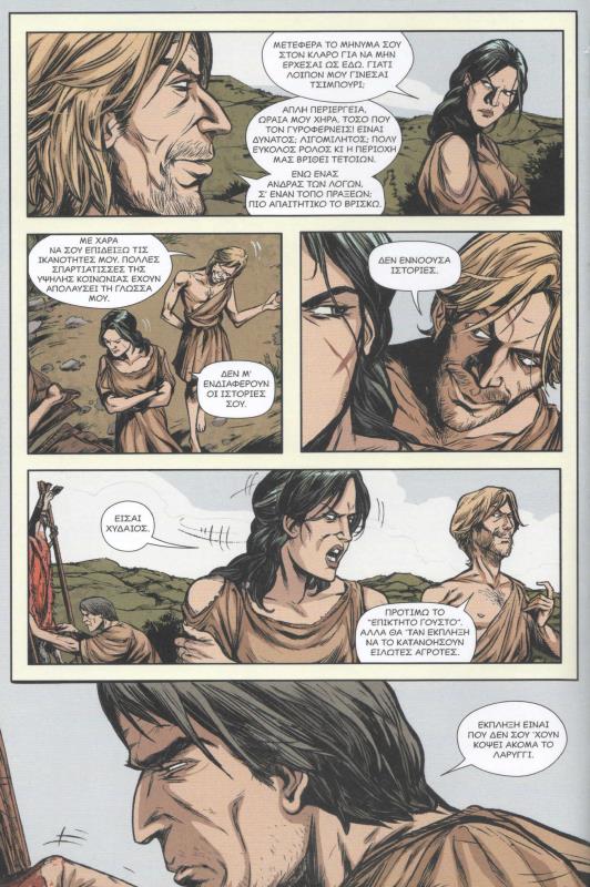 επιστήμονες με πολλά προσόντα σε διάφορα επιστημονικά πεδία. Το ερώτημα παραμένει: Ως πότε ως Σπαρτιάτες -όσοι τουλάχιστον δεν επικροτούμε την εκμετάλλευση- θα παραμένουμε σιωπηλοί σε αυτές τις θρασύτατες αισχρές απόπειρες διαστρέβλωσης και εκμετάλλευσης του κλέους των προγόνων μας; Αλλά θα μου πείτε, μάλλον βαυκαλίζομαι. Το μόνο που έχω να θυμηθώ είναι τον κ. Χρήστο Πλειώτα ο οποίος απεσταλμένος της διοίκησης Βολιώτη κυνηγούσε τον Αμερικανό καρτουνίστα Frank Miller -δημιουργό του καρτούν "300"- στην Θεσσαλονίκη για να τον τιμήσει ως επίτιμο δημότη της πόλης (βλέπε και άρθρο εδώ). Σας παραθέτω μερικά δείγματα από το βιβλίο για να έχετε μια γεύση. Οι είλωτες έχουν πετσοκόψει έναν Σπαρτιάτη 300 όμοιοι κυνηγούν τρεις κακομοίρηδες είλωτες να τους σφάξουν (ναι υπάρχει μια γυναίκα) Οι Σπαρτιάτες έχουν τιμωρήσει του είλωτες Ένας είλωτας σκοτώνει έναν Σπαρτιάτη πολεμιστή Ο είλωτας και η γλώσσα του (κάτι για τα παιδιά μας που θα διαβάσουν το καρτούν) N. M.![]()