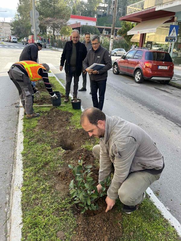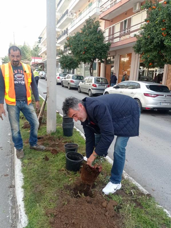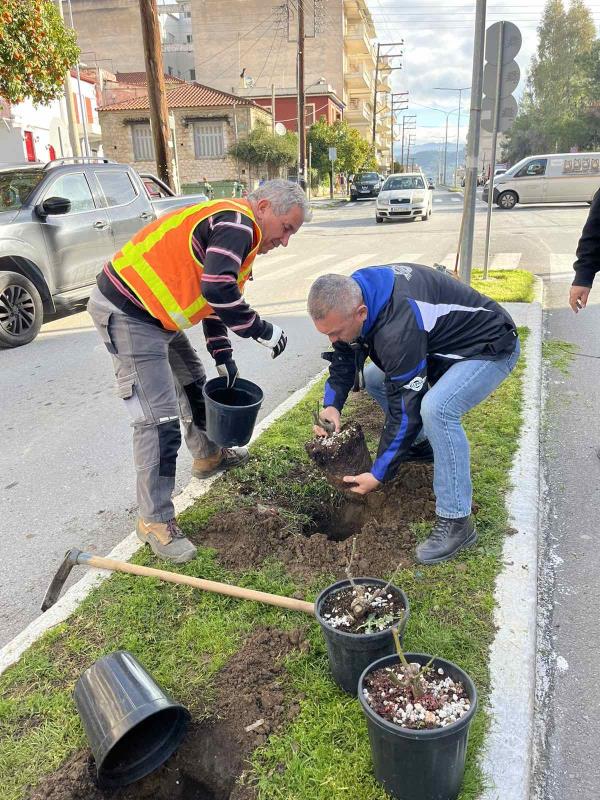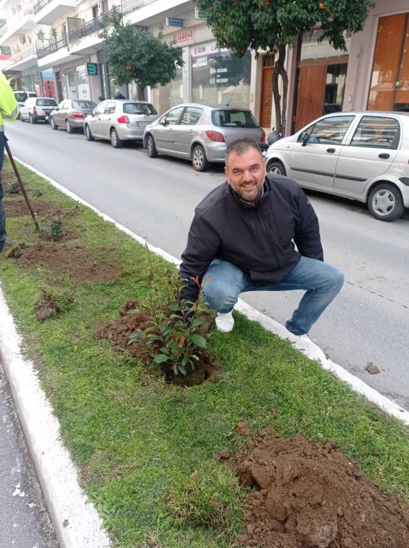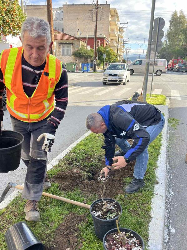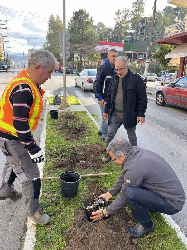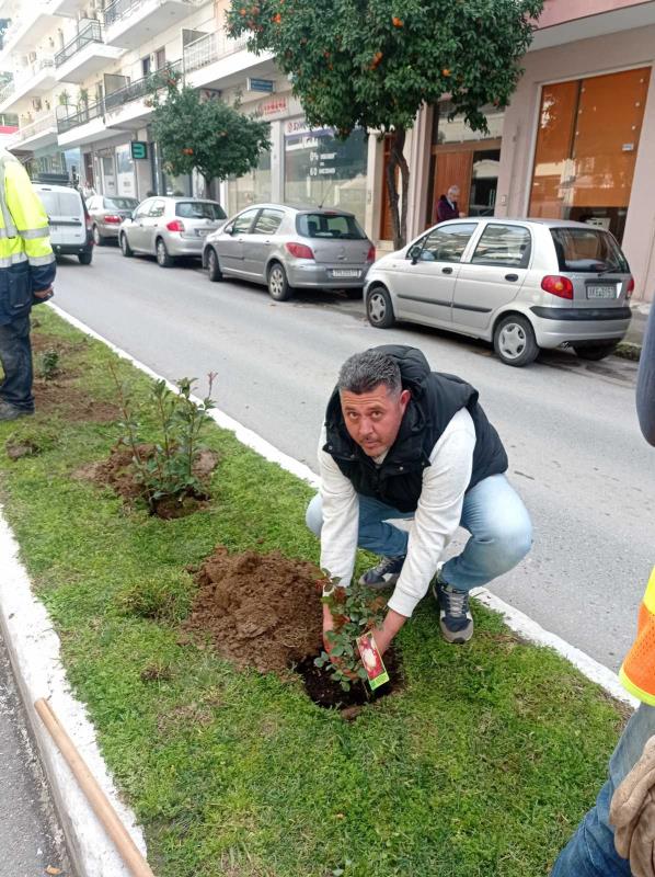 Ευστράτιο Κοκκορό με την φύτευση τριανταφυλλιών στις νησίδες κεντρικών δρόμων