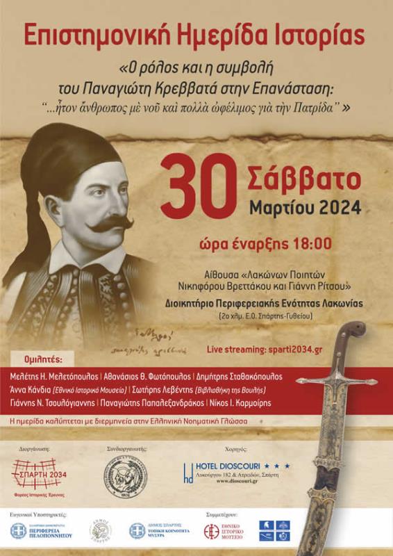 Ιδρυτή του Φορέα Ιστορικής Έρευνας «Σπάρτη 2034» 18:10 | Προβολή του ντοκιμαντέρ μικρού μήκους «Ποιος ήταν ο