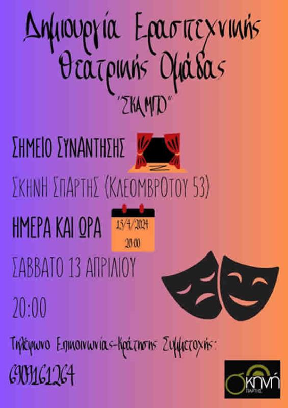 Σάββατο 13/4 και ώρα 20:00 στον χώρο της Σκηνής Σπάρτης, στον πεζόδρομο