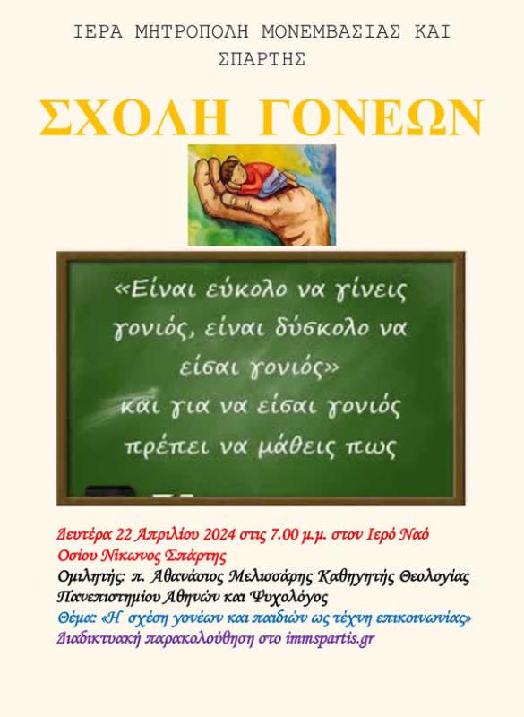 σχέση γονέων και παιδιών ως τέχνη επικοινωνίας». Διαδικτυακή παρακολούθηση στο immspartis.gr![]()
