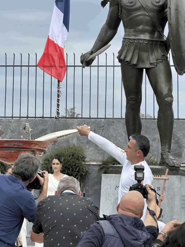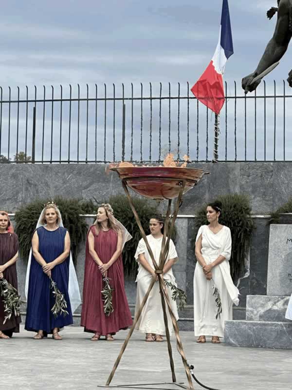 παρακολούθησε το άναμμά της, υπό το «βλέμμα» του Λεωνίδα, έξω από το Εθνικό