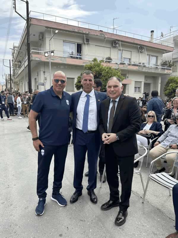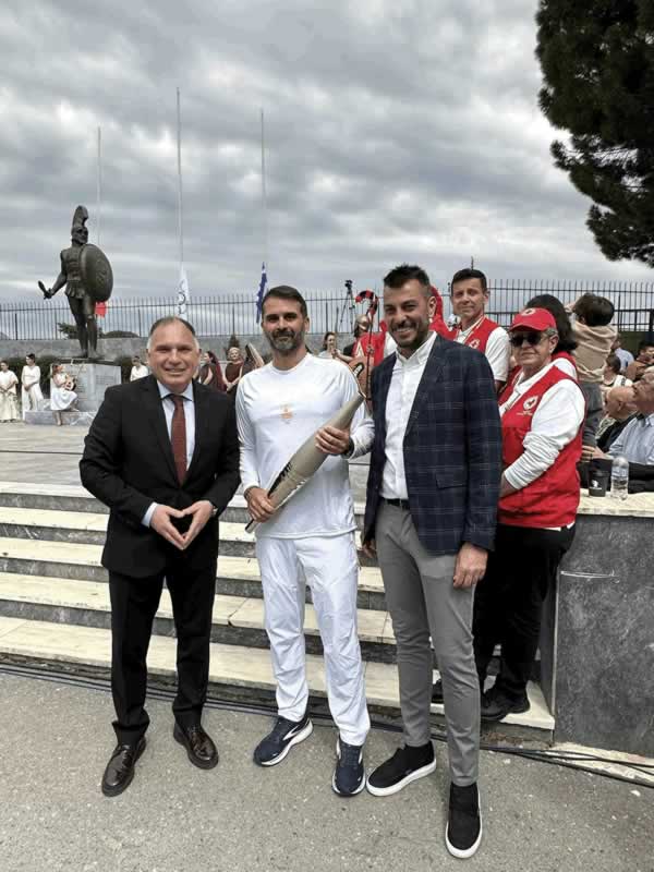 Σπύρο Καπράλο και τον Πρόεδρο της Επιτροπής Ολυμπιακής Λαμπαδηδρομίας Θανάση
