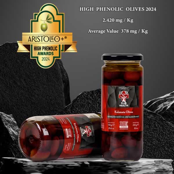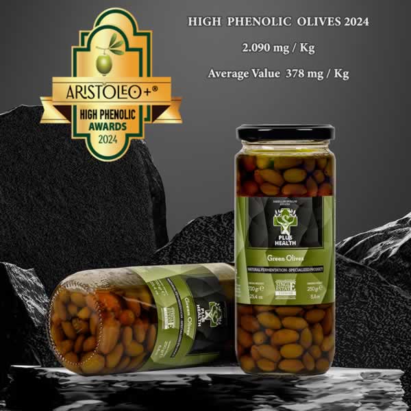 OLIVES - Double Gold HIGH PHENOLIC AWARD - 2090 mg/kg Αξίζει να σημειωθεί ότι οι ελιές «Plus Health