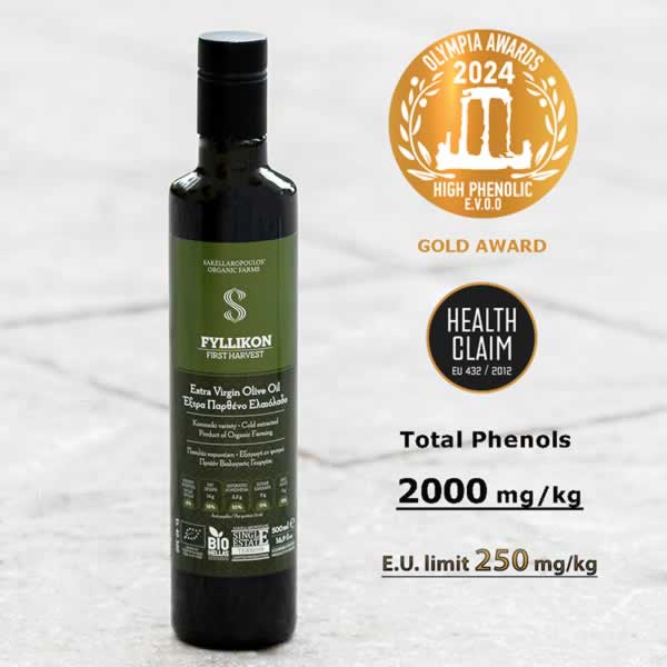 υψηλά φαινολικό ελαιόλαδο που πληροί τις προϋποθέσεις του Κανονισμού 432 / 2012